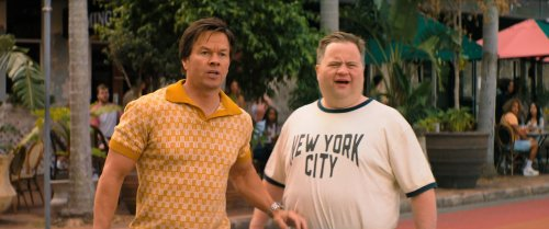 In theory, pairing actors as different as Mark Wahlberg and Paul Walter Hauser together is a good idea and even one that both this Farrelly and his brother might have accomplished with some aplomb in the past. They play, respectively, Brad and Elijah, a pair of marketing executives for a prophylactics company, each of whom has part of an idea—eventually combined when they agree to work together—about a condom that, let’s just say, offers full coverage of the downstairs-front-door business. Yes, in case that doesn’t indicate enough about what we should expect, this is a constantly, overwhelmingly, and repetitively crude movie, leaving no stone unturned in the bad-taste department.
